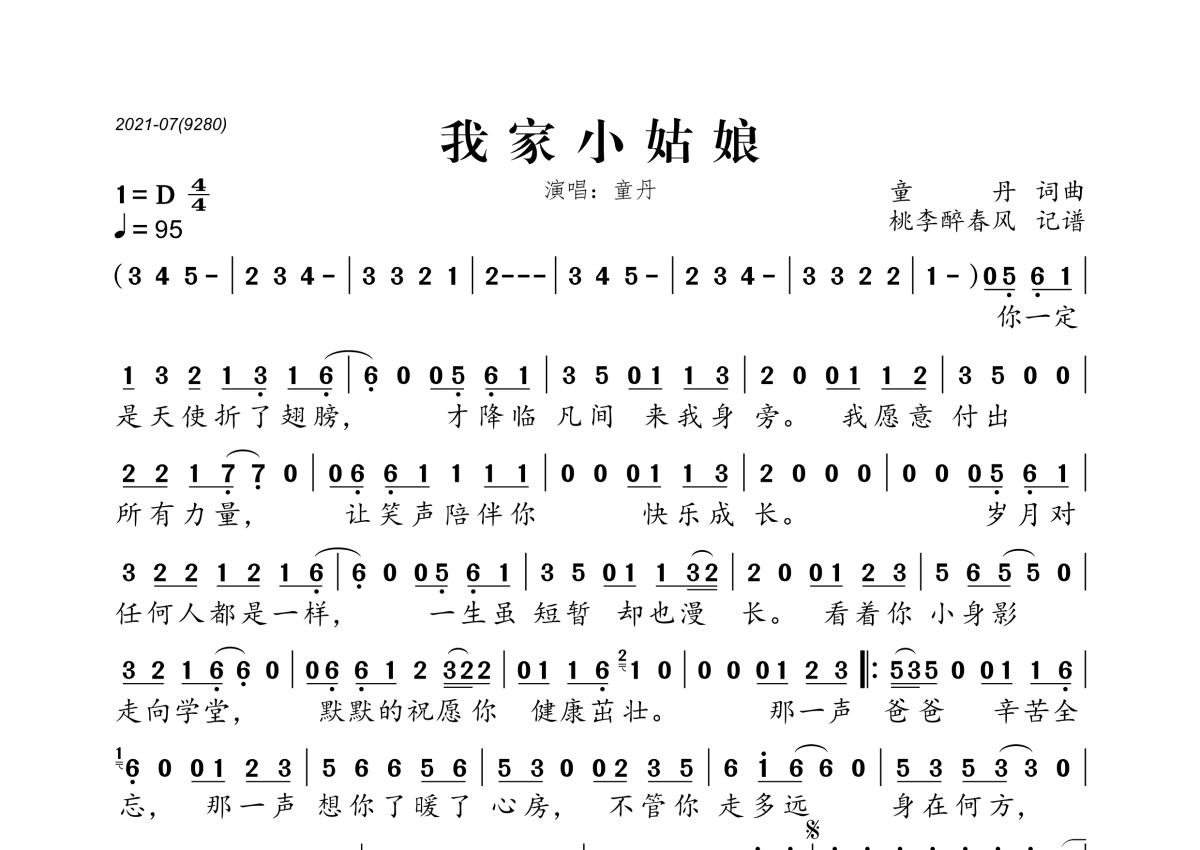 童丹《我家小姑娘》简谱