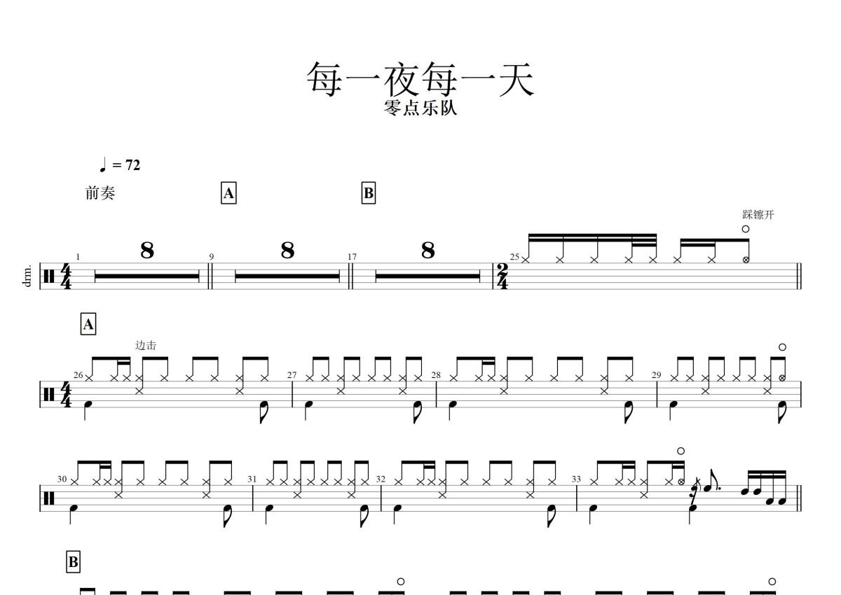 零点乐队《每一夜每一天》鼓谱 - 架子鼓谱