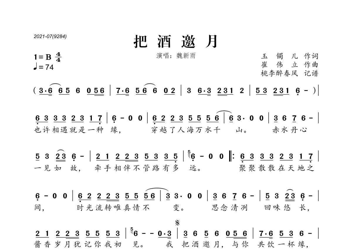 把酒邀月简谱 - 魏新雨演唱