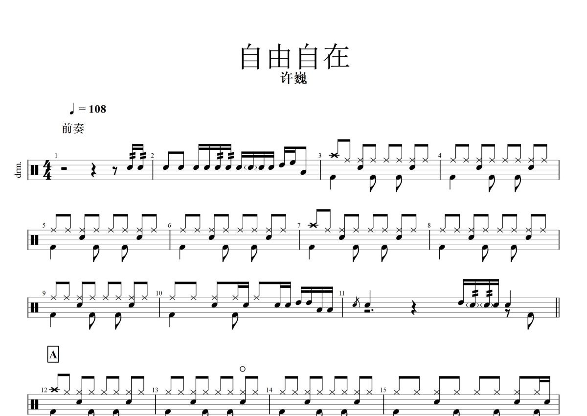 《自由自在》是许巍演唱的一首歌曲,这份鼓谱共有四张高清图谱,图谱由 @打鼓谱 编配上传,图谱使用五线谱编配,使用这份自由自在架子鼓谱,你将能够轻松地敲打出这首许巍的自由自在,快来尝试吧。《自由自在》是田震演唱的歌曲,由张新宇、宁江、乐树伟作词,许巍作曲,收录在《野花》专辑中,于1996年3月1日发行。 。