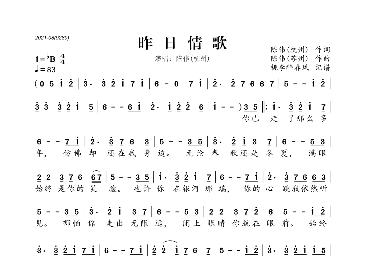 陈伟(杭州)《昨日情歌》简谱