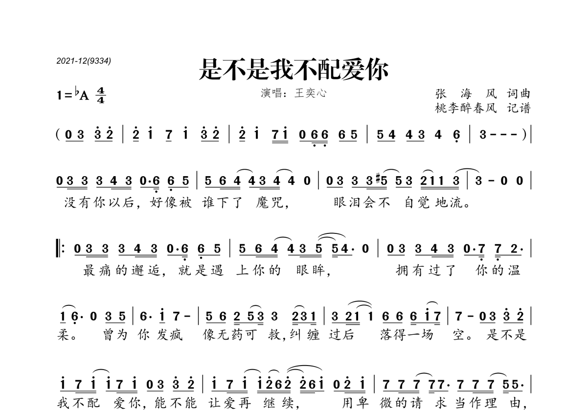 《是不是我不配爱你》是王奕心演唱的一首歌曲,拍号为4/4拍,这份简谱共有一张高清图谱,图谱由 @桃李醉春风 编配上传。