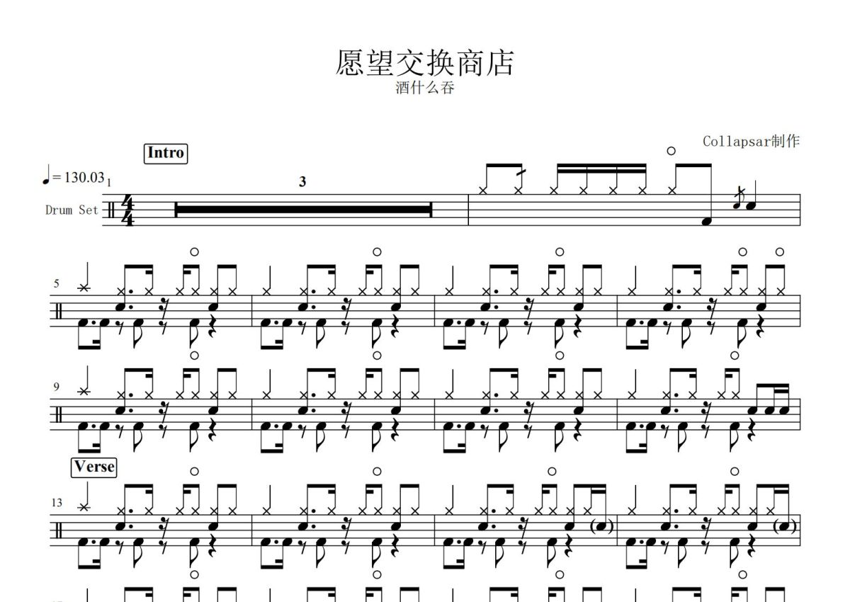 酒什么吞《愿望交换商店》鼓谱 - 架子鼓谱