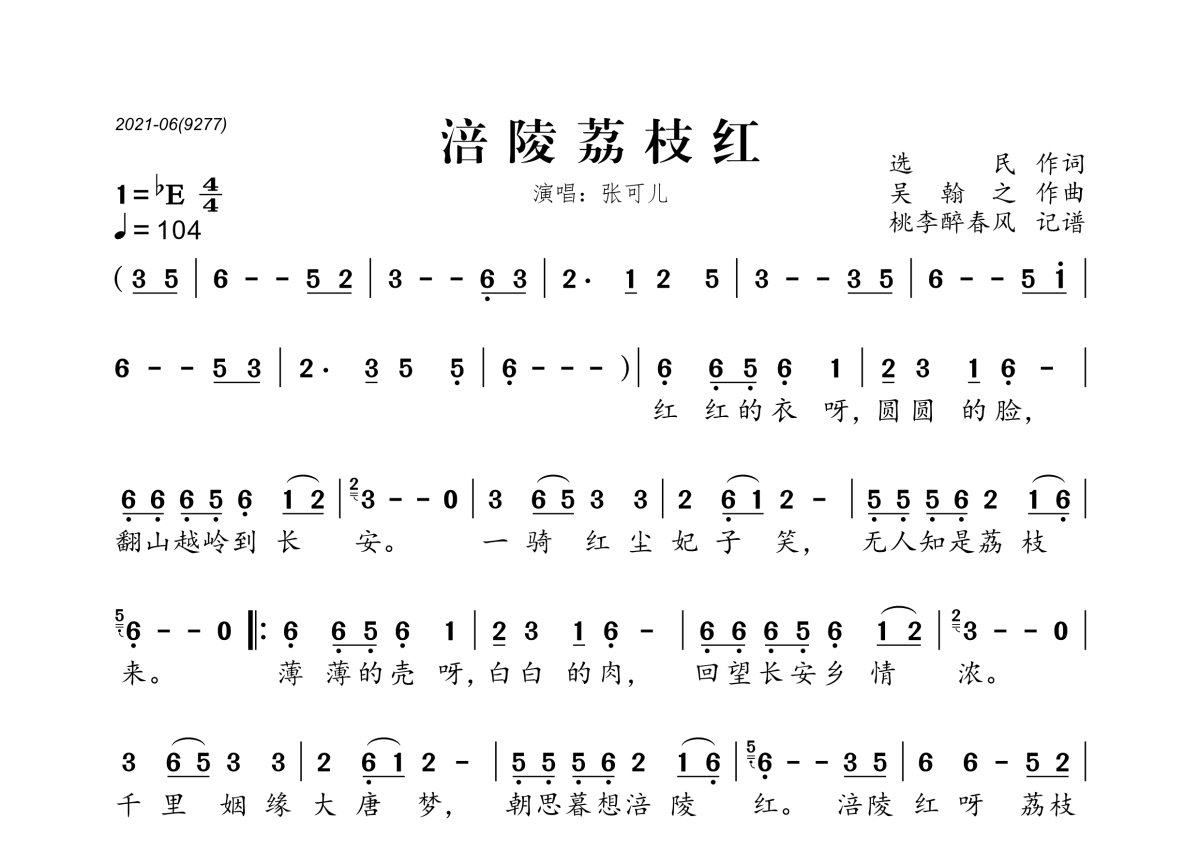 张可儿《涪陵荔枝红》简谱