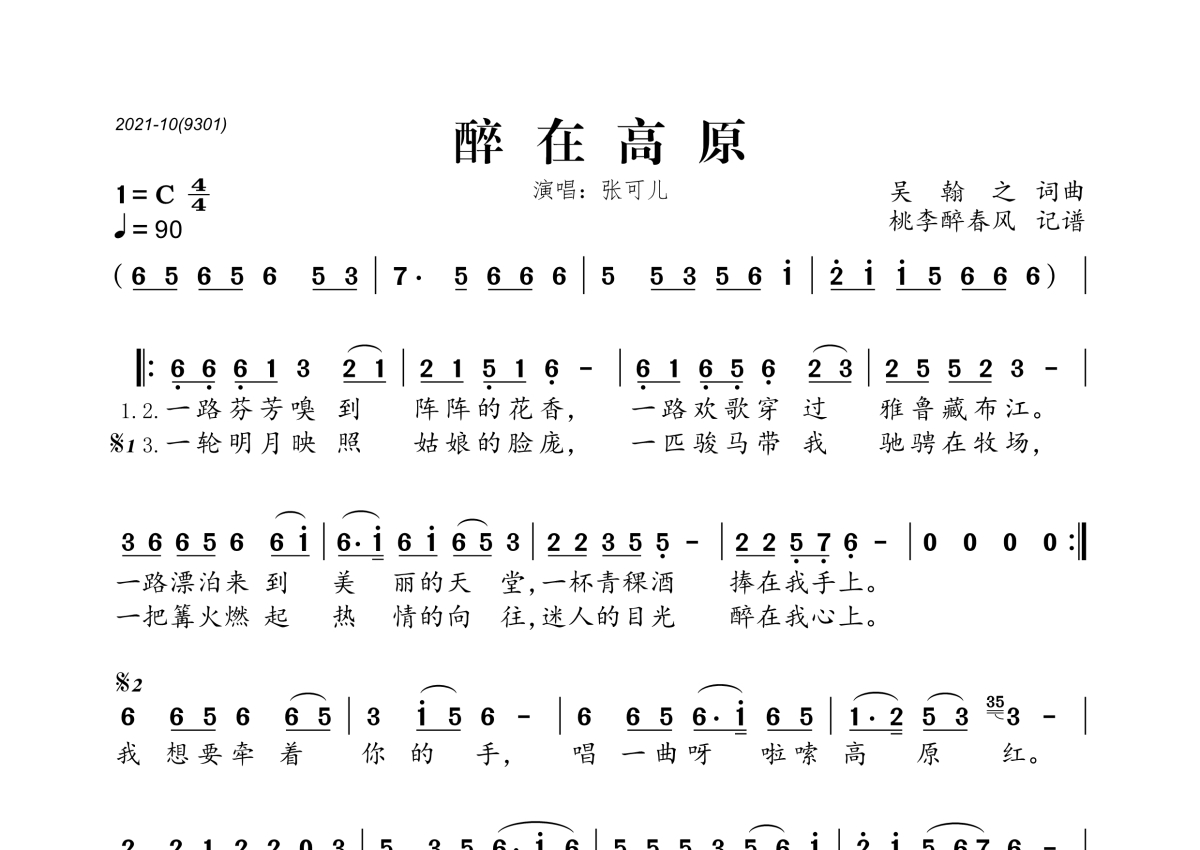 张可儿《醉在高原》简谱