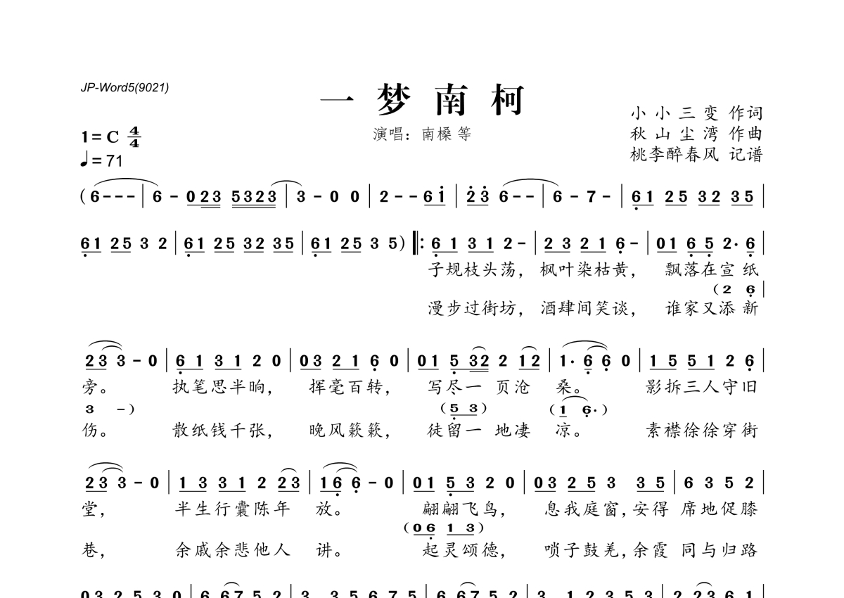 南槡等《一梦南柯》简谱