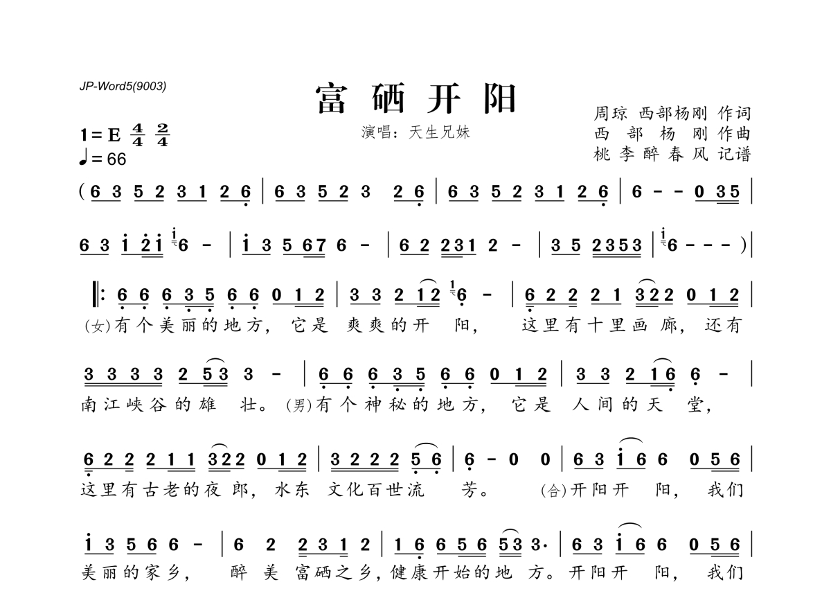 天生兄妹《富硒开阳》简谱