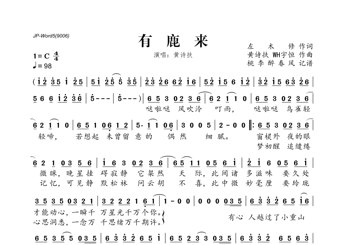 黄诗扶《有鹿来》简谱