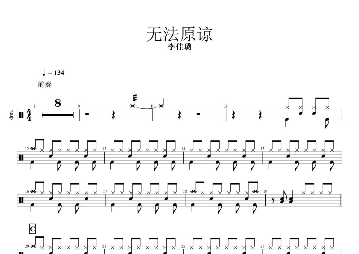 李佳璐《无法原谅》鼓谱 - 架子鼓谱