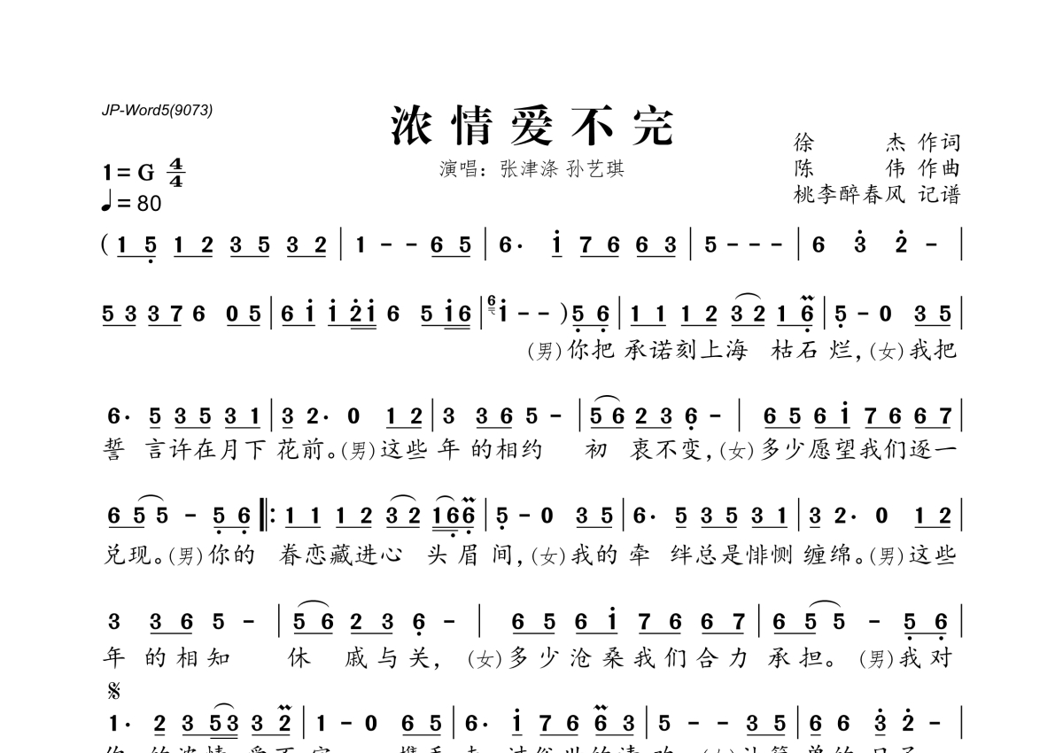 浓情爱不完简谱 - 孙艺琪&张津涤演唱