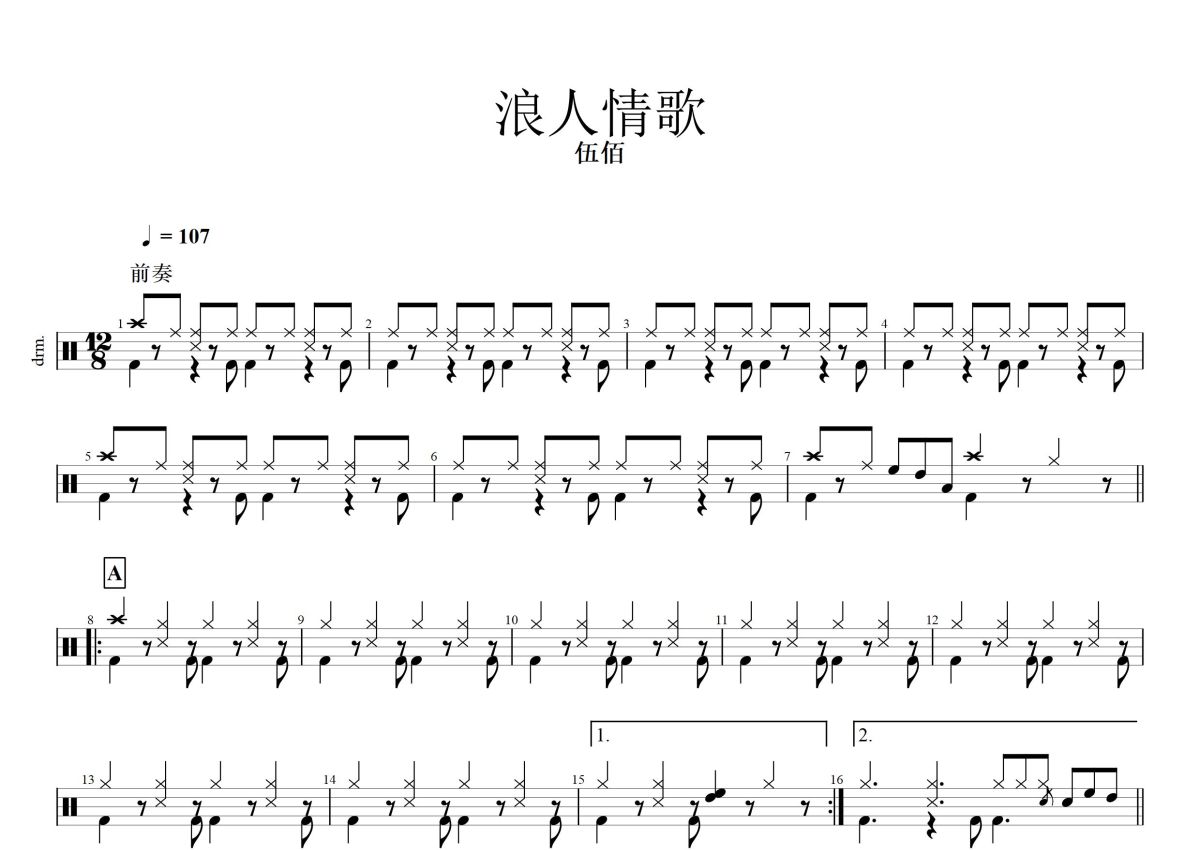 伍佰《浪人情歌》鼓谱 - 架子鼓谱