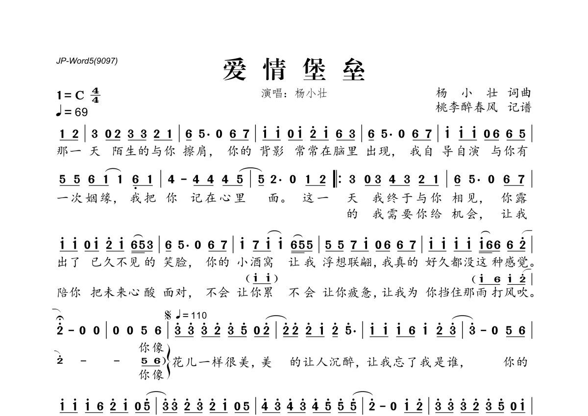 杨小壮《爱情堡垒》简谱