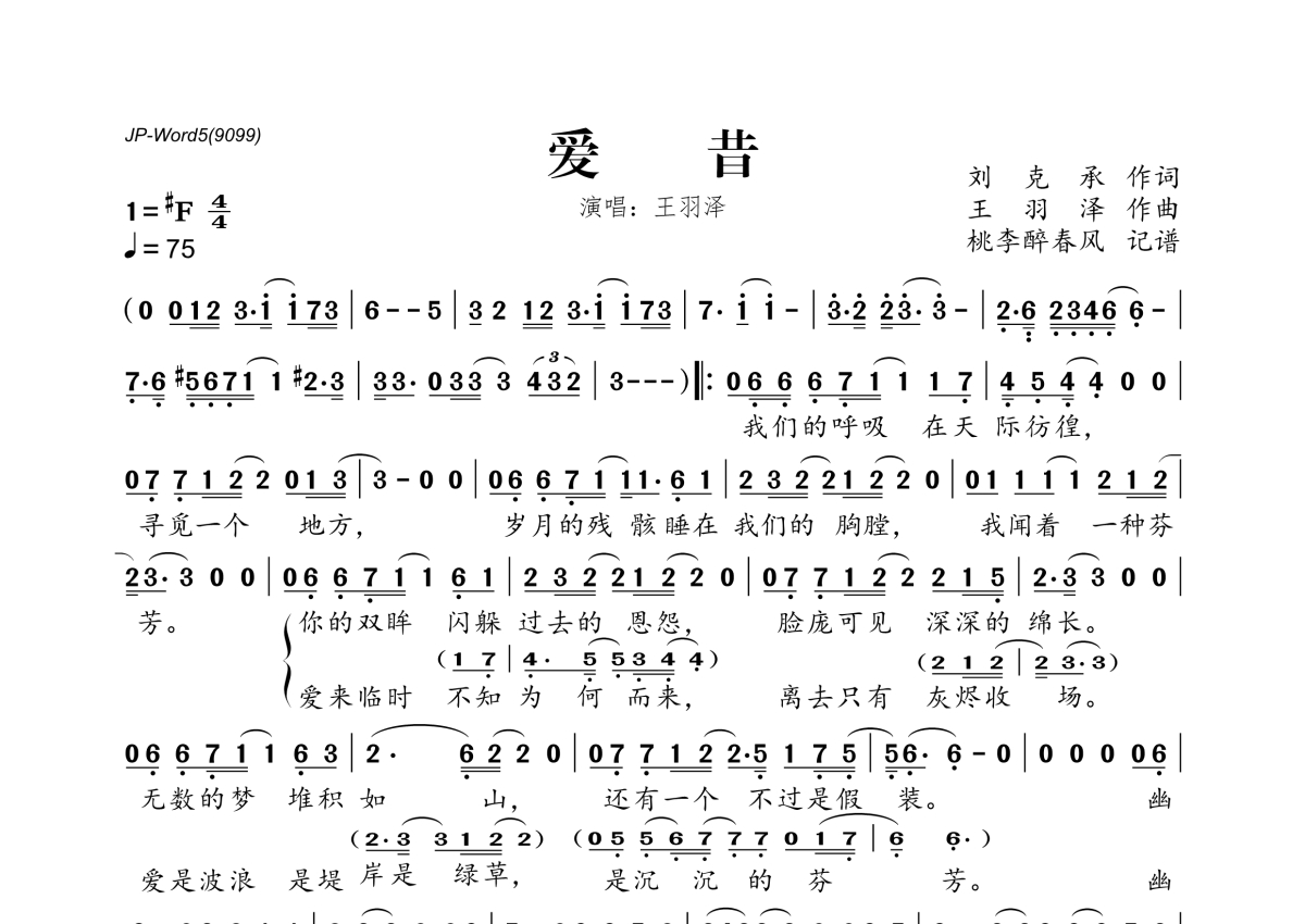 王羽泽《爱昔》简谱