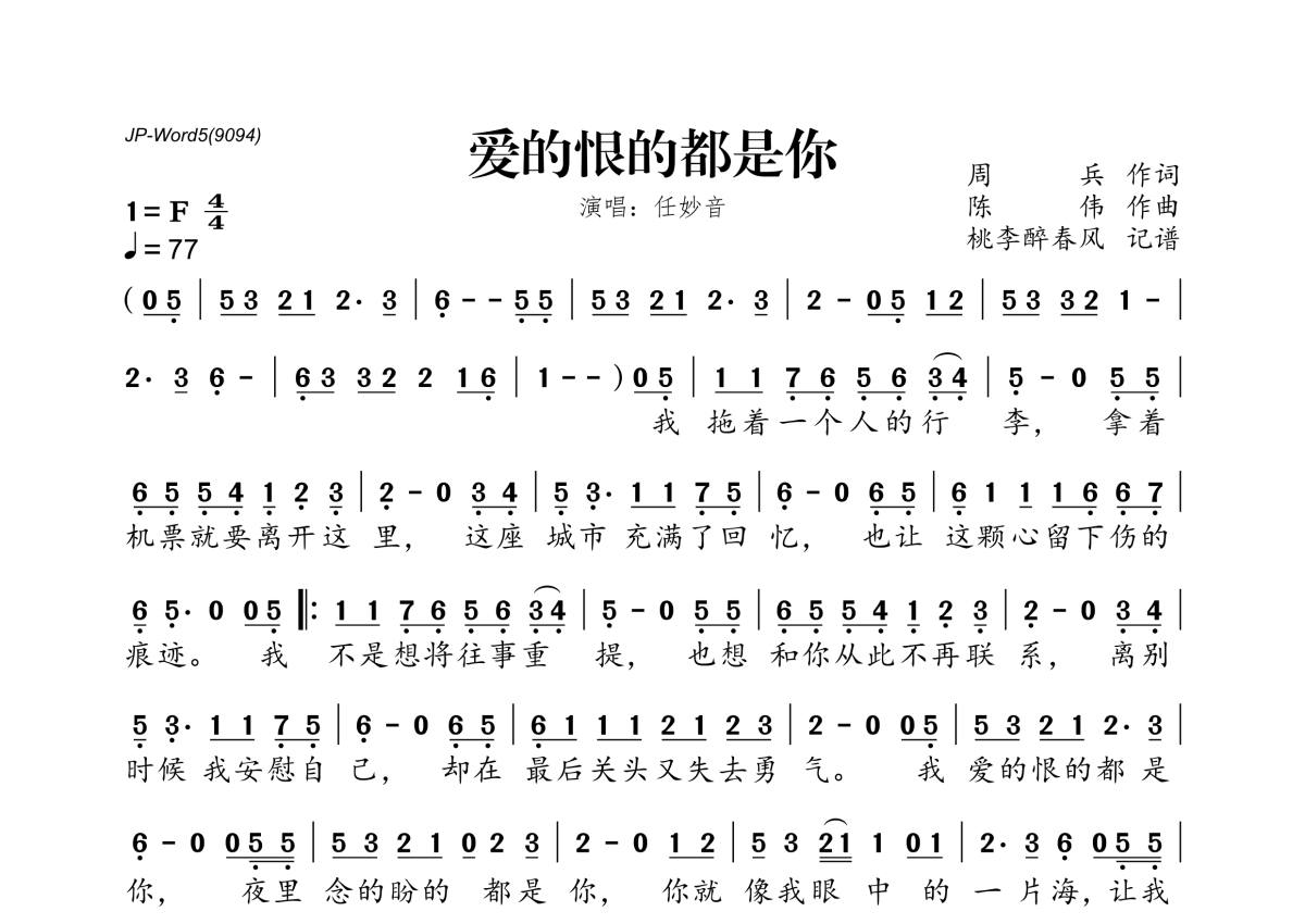 任妙音《爱的恨的都是你》简谱