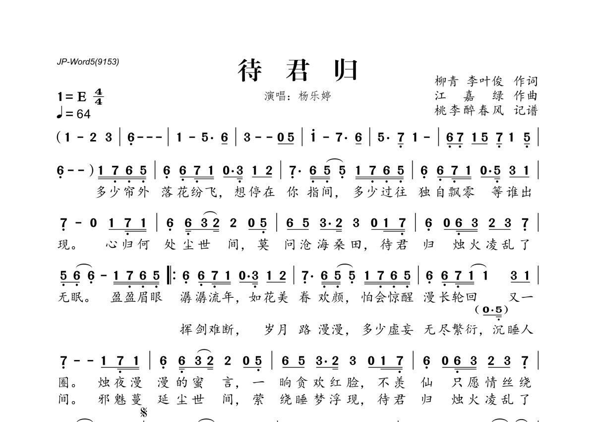 杨乐婷《待君归》简谱