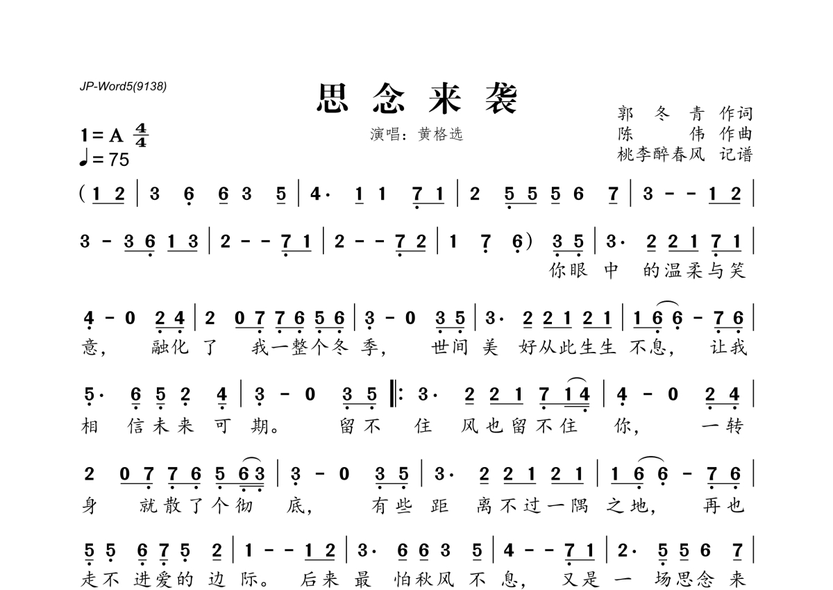 黄格选《思念来袭》简谱
