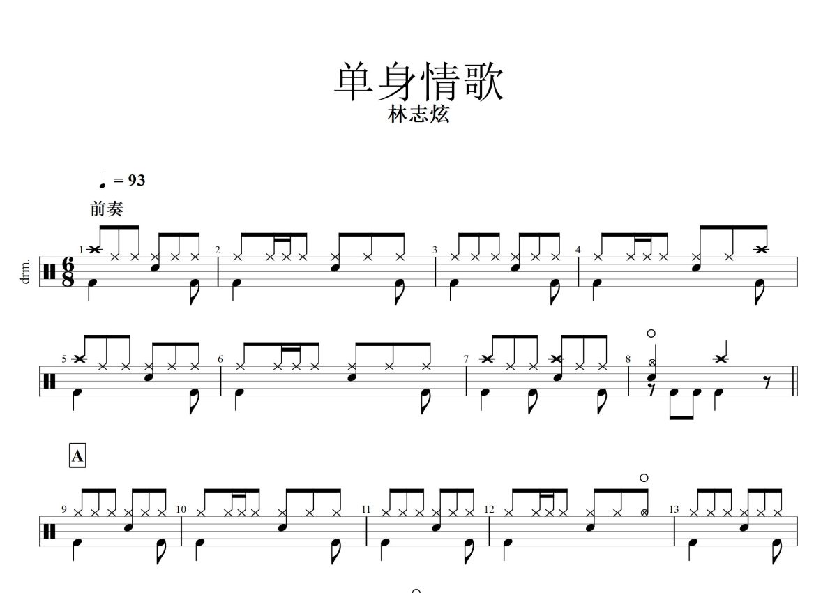 林志炫《单身情歌》鼓谱 - 架子鼓谱