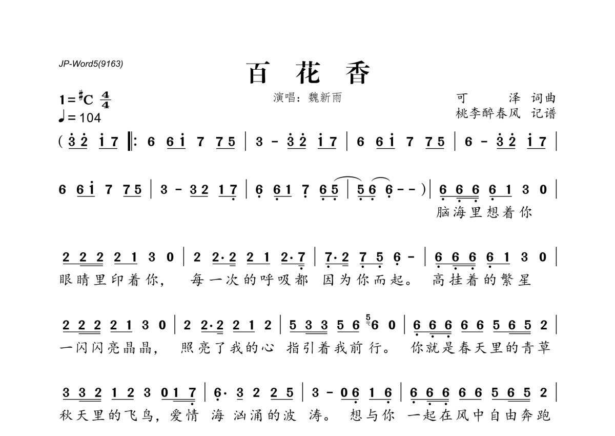 百花香简谱 - 魏新雨演唱