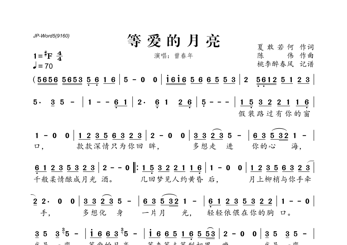 曾春年《等爱的月亮》简谱