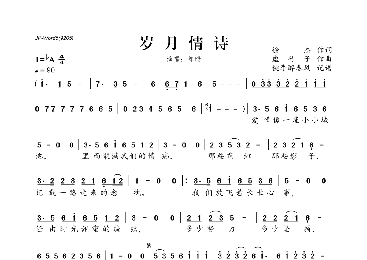 陈瑞《岁月情诗》简谱