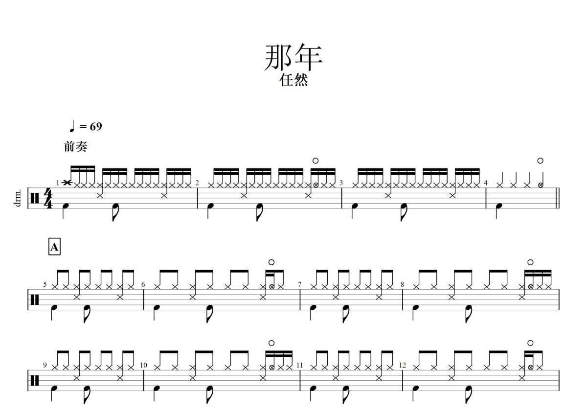 任然《那年》鼓谱 - 架子鼓谱