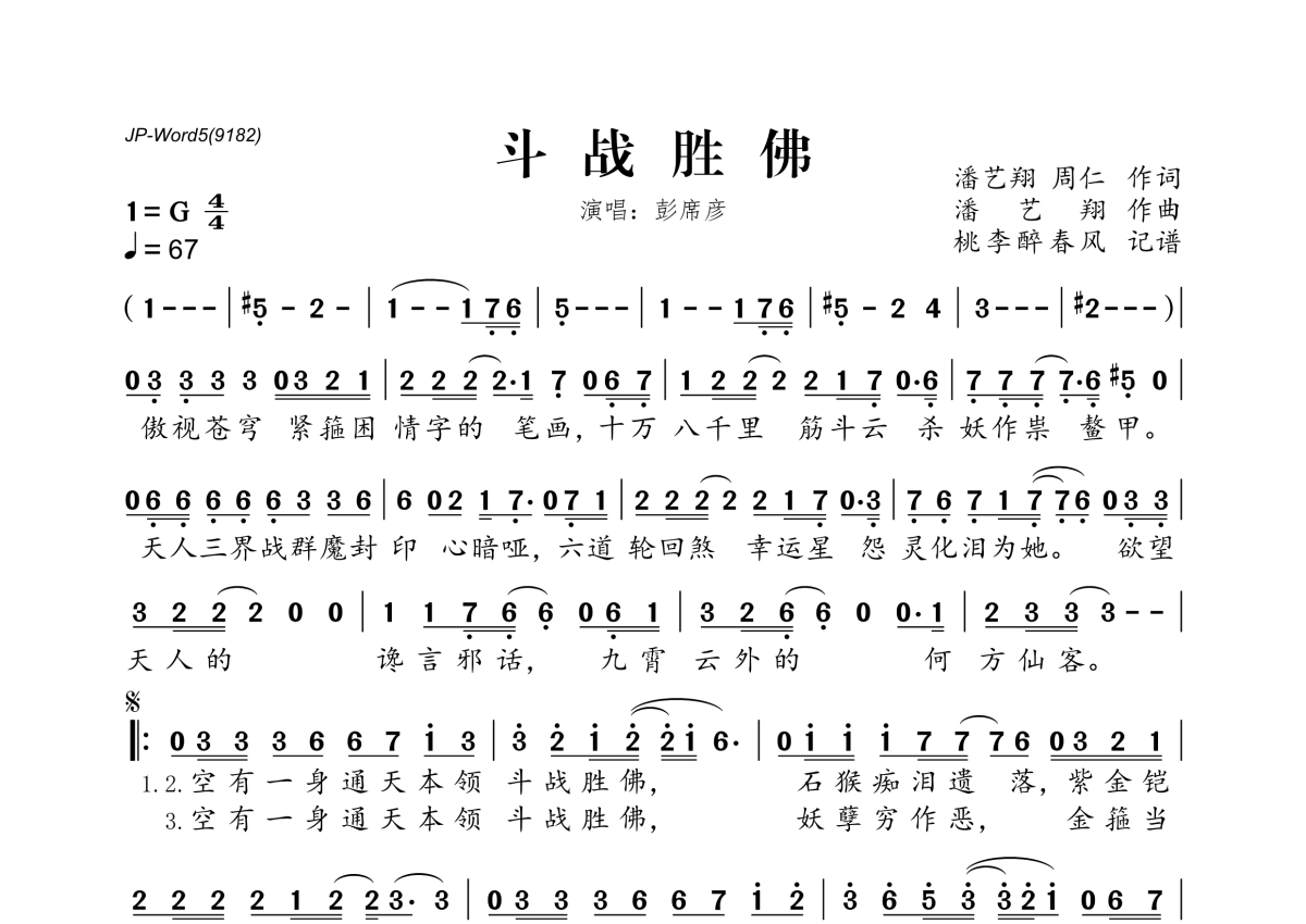 彭席彦《斗战胜佛》简谱