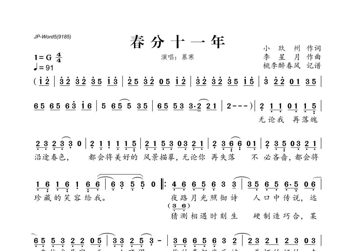 慕寒《春分十一年》简谱