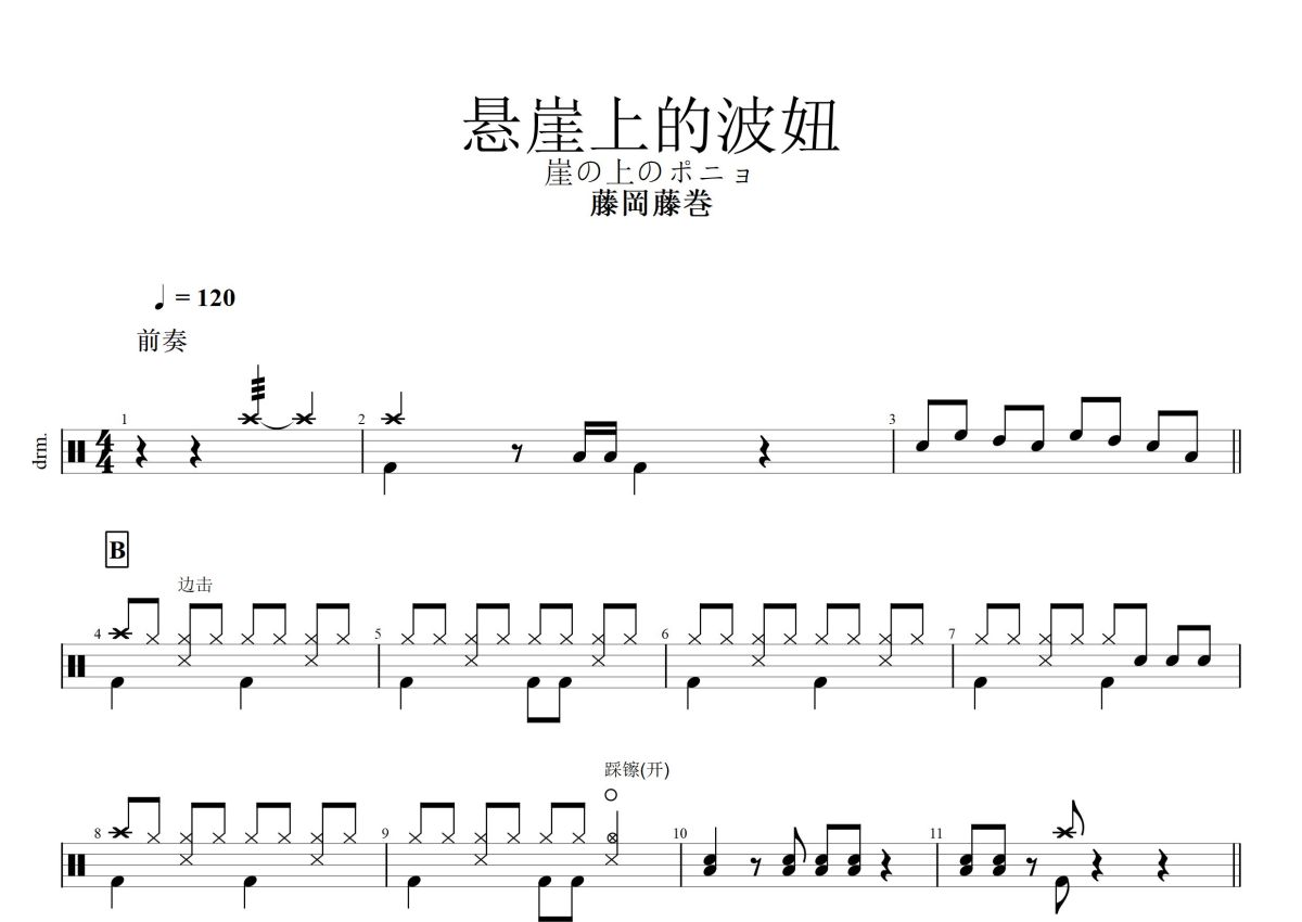 藤岡藤巻《悬崖上的波妞》鼓谱 - 架子鼓谱