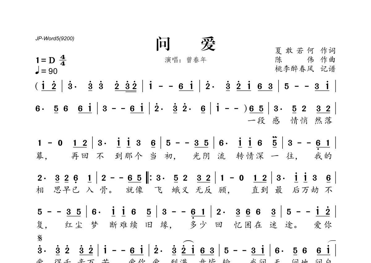 曾春年《问爱》简谱