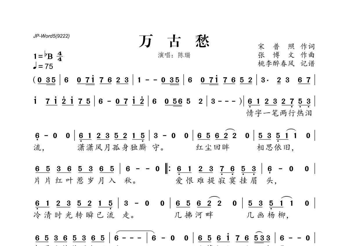 《万古愁》简谱 - 陈瑞