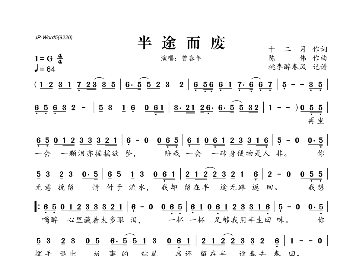 曾春年《半途而废》简谱