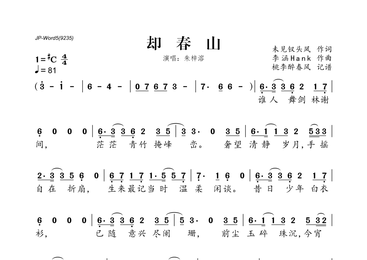 朱梓溶《却春山》简谱