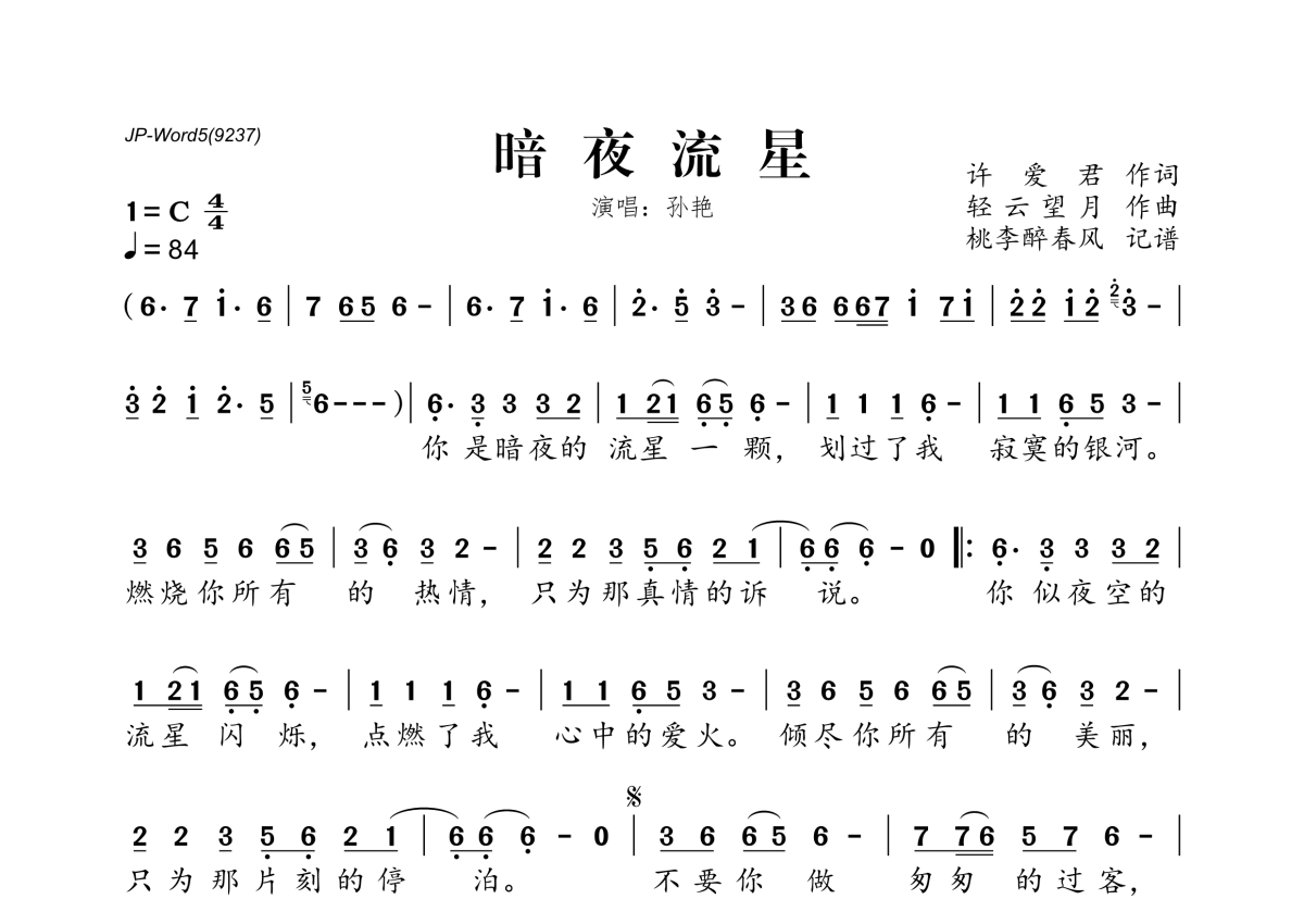孙艳《暗夜流星》简谱