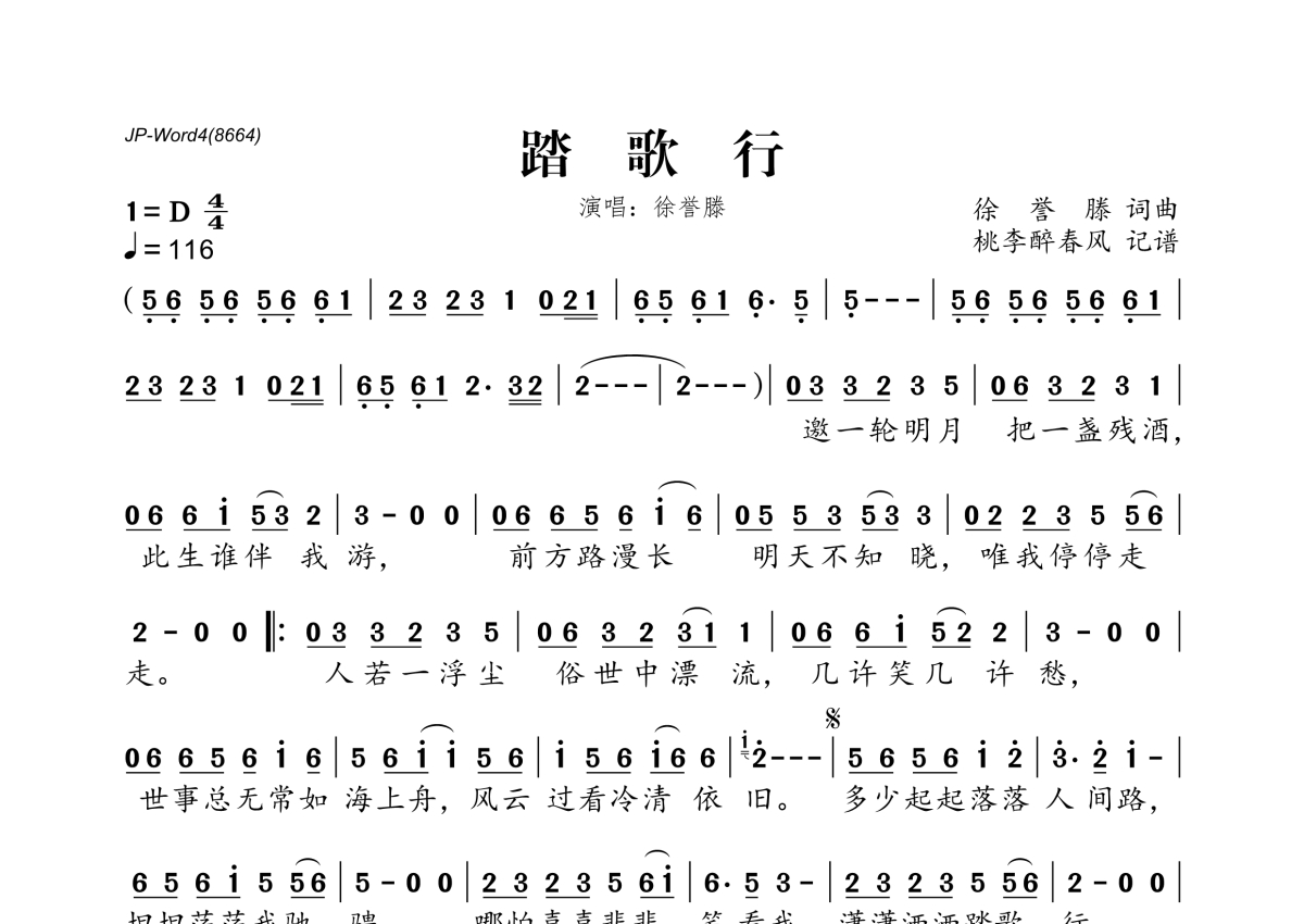 徐誉滕《踏歌行》简谱