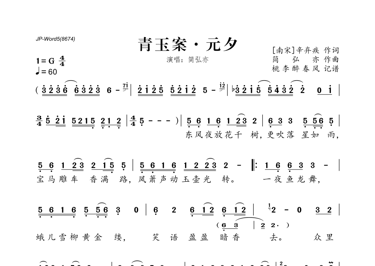 简弘亦《青玉案·元夕》简谱