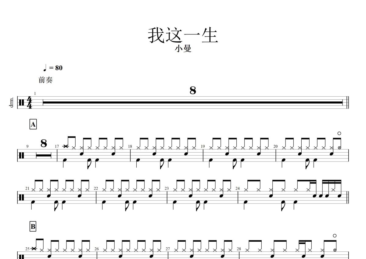 小曼《我这一生》鼓谱 - 架子鼓谱