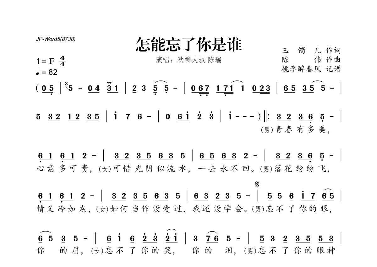 秋裤大叔&陈瑞《怎能忘了你是谁》简谱