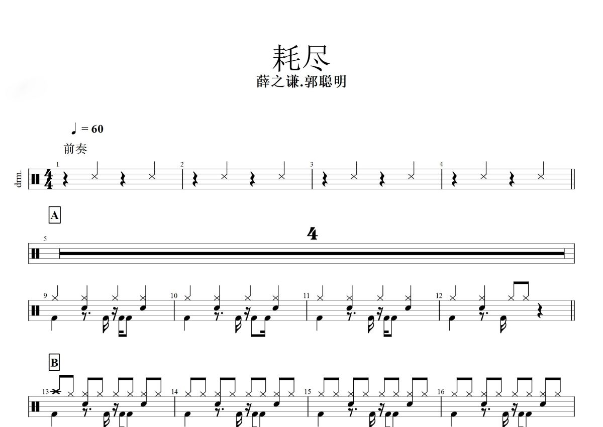 薛之谦&郭聪明《耗尽》鼓谱 - 架子鼓谱