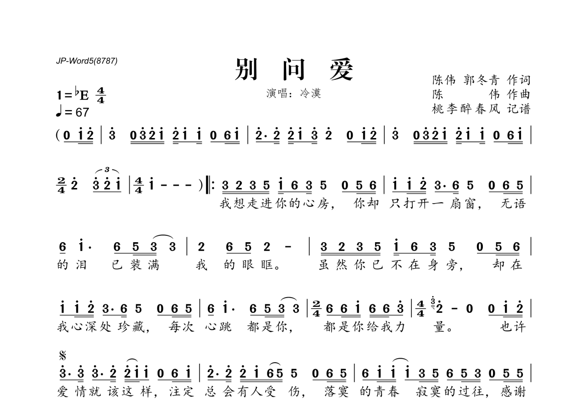 冷漠《别问爱》简谱