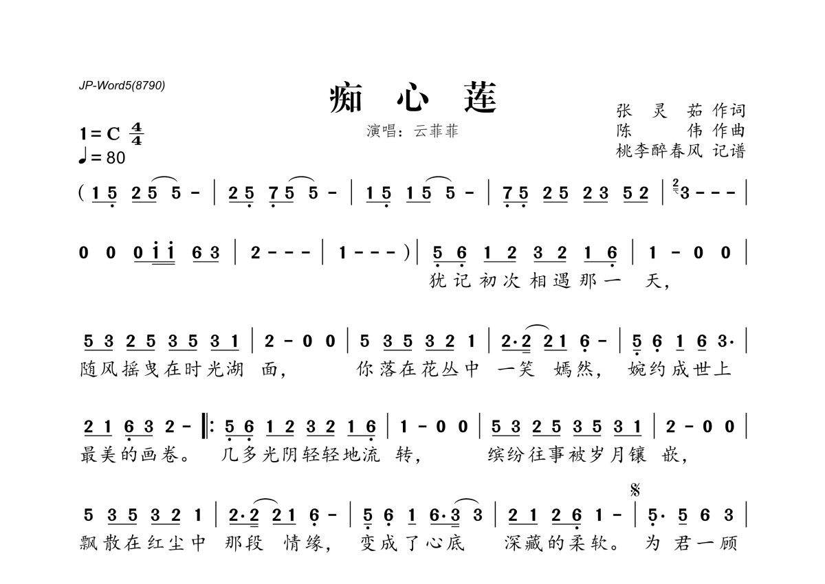 云菲菲《痴心莲》简谱