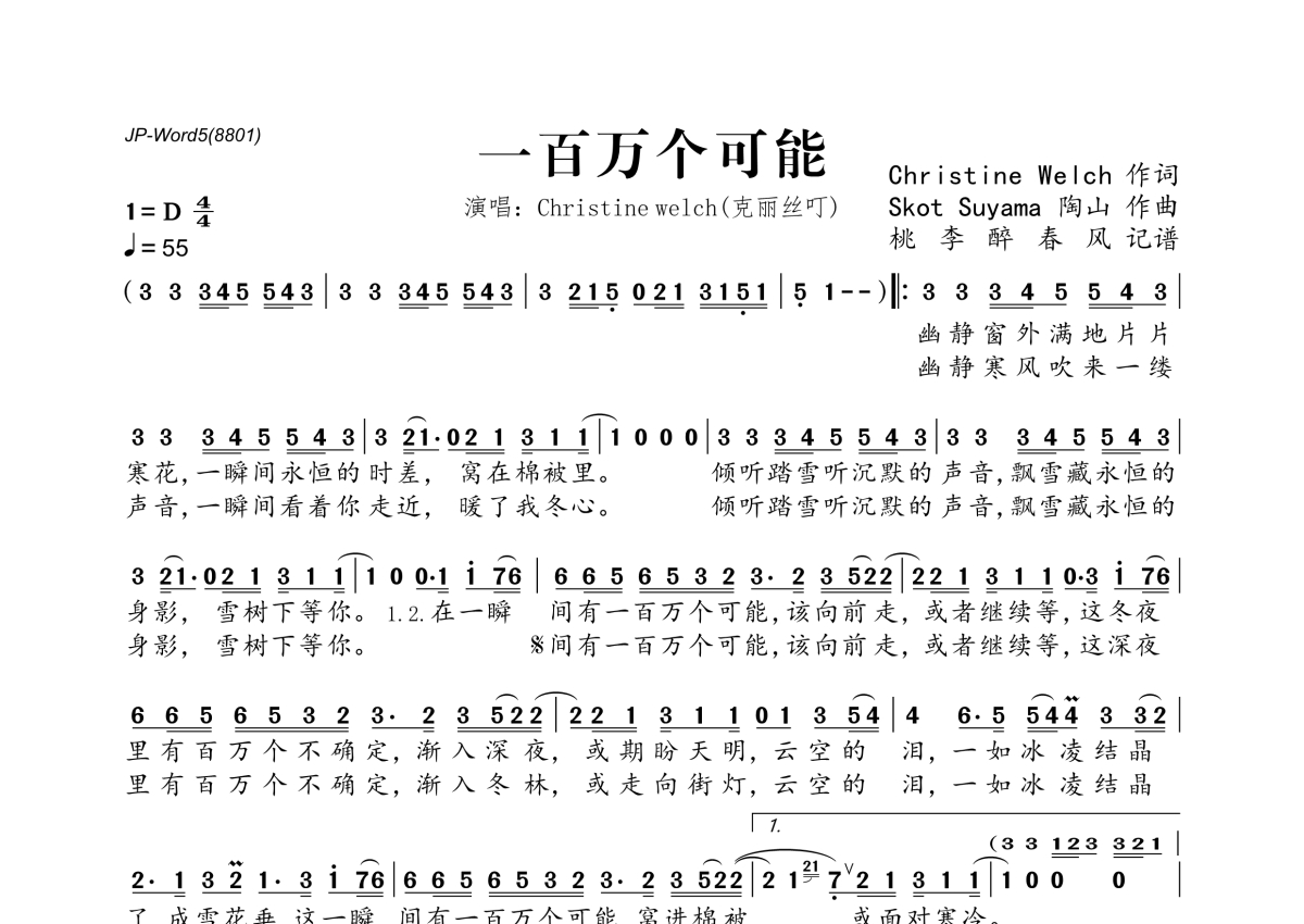 Christine welch(克丽丝叮)《一百万个可能》简谱
