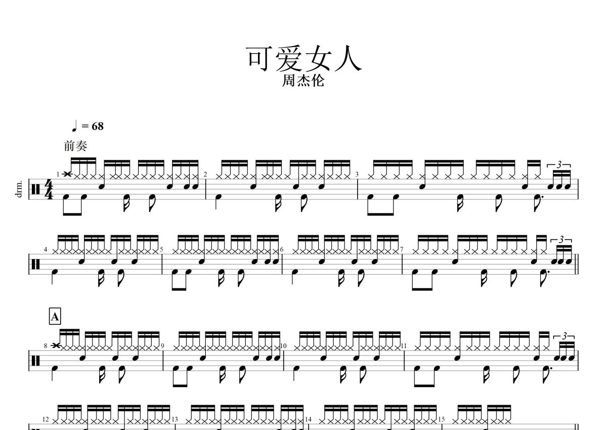 周杰伦《可爱女人》鼓谱 - 架子鼓谱
