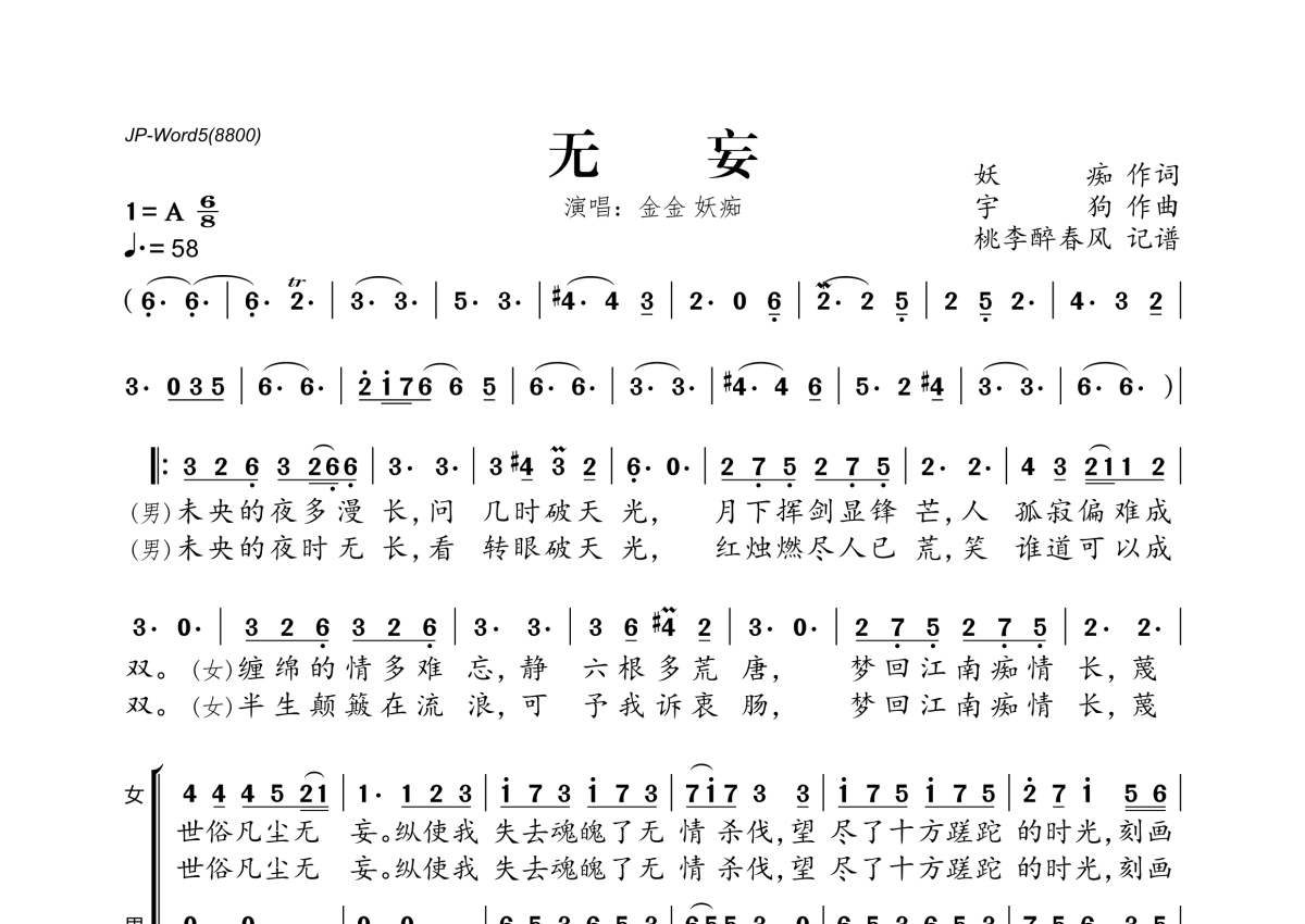 金金&妖痴《无妄》简谱