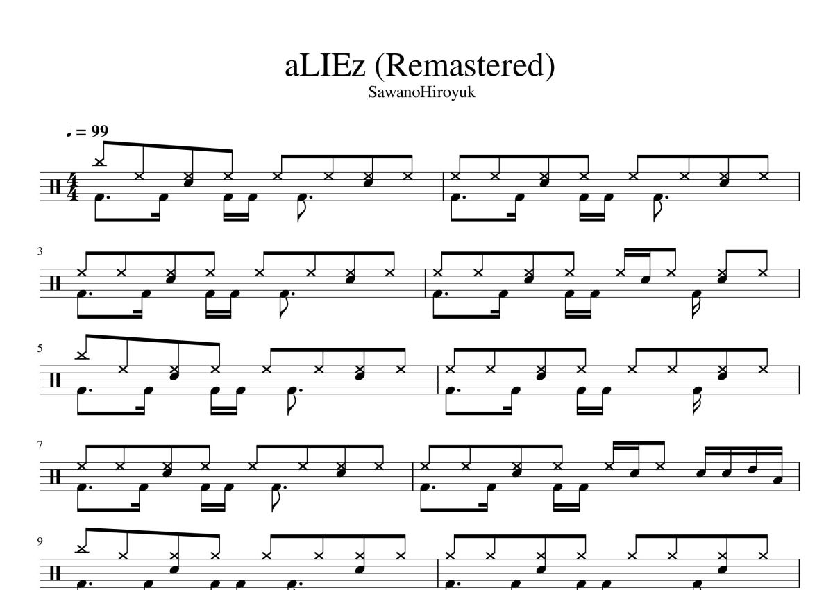 SawanoHiroyuk《aLIEz》鼓谱 - 架子鼓谱