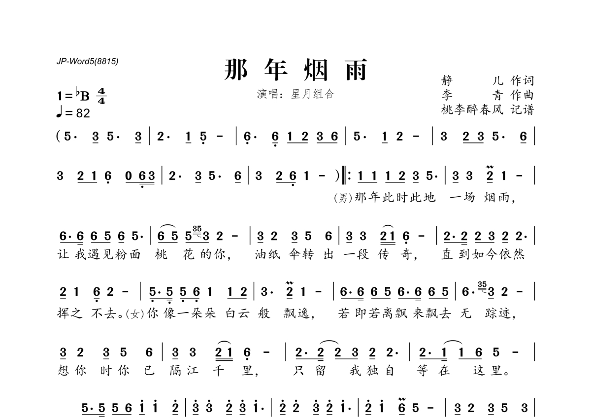 星月组合《那年烟雨》简谱