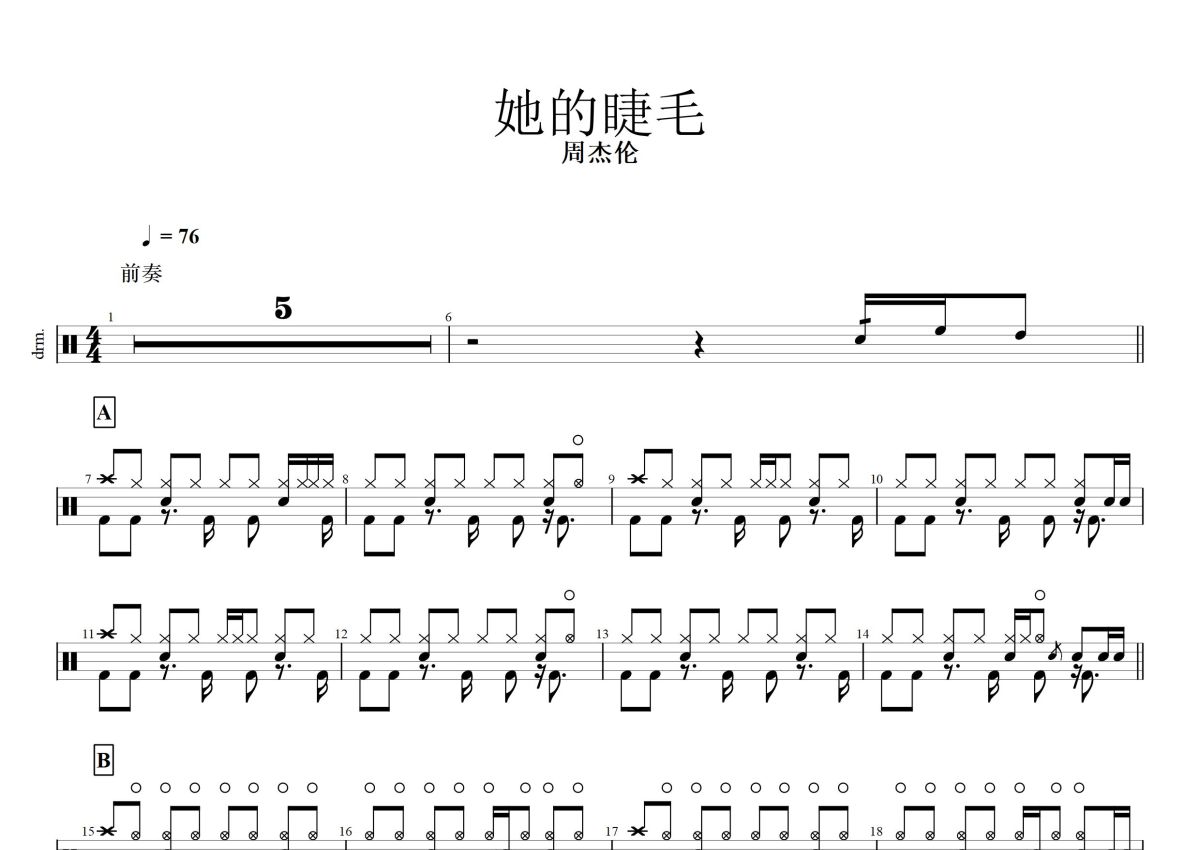 周杰伦《她的睫毛》鼓谱 - 架子鼓谱