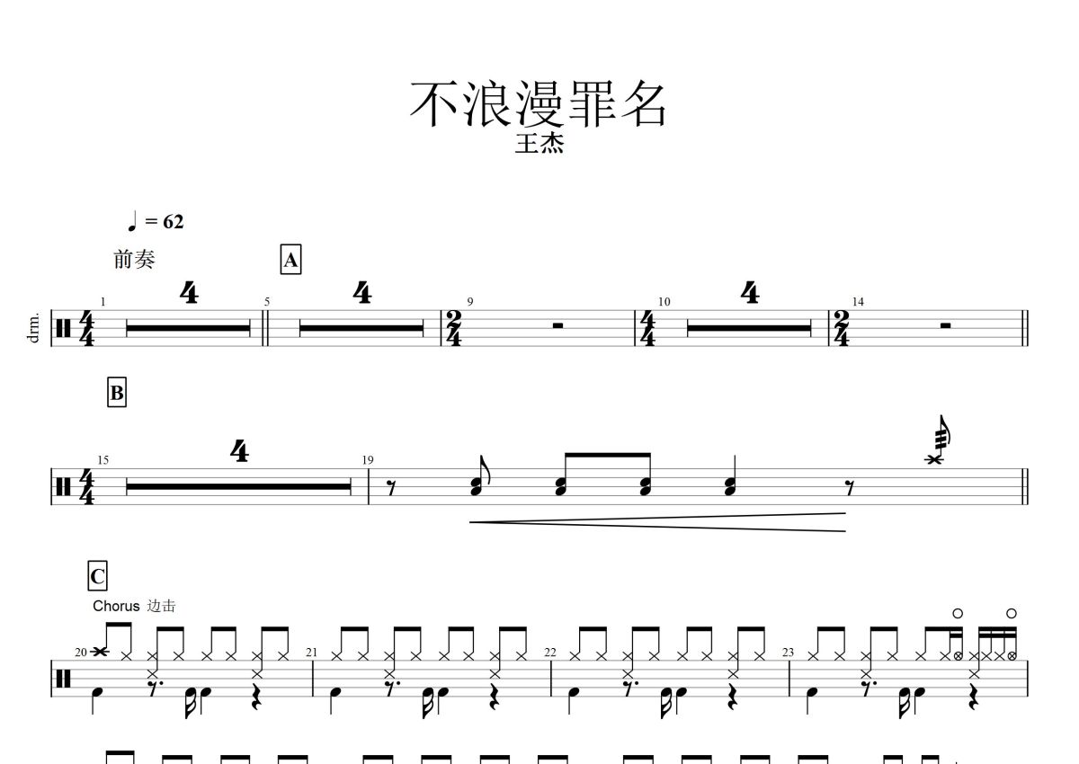 王杰《不浪漫罪名》鼓谱 - 架子鼓谱