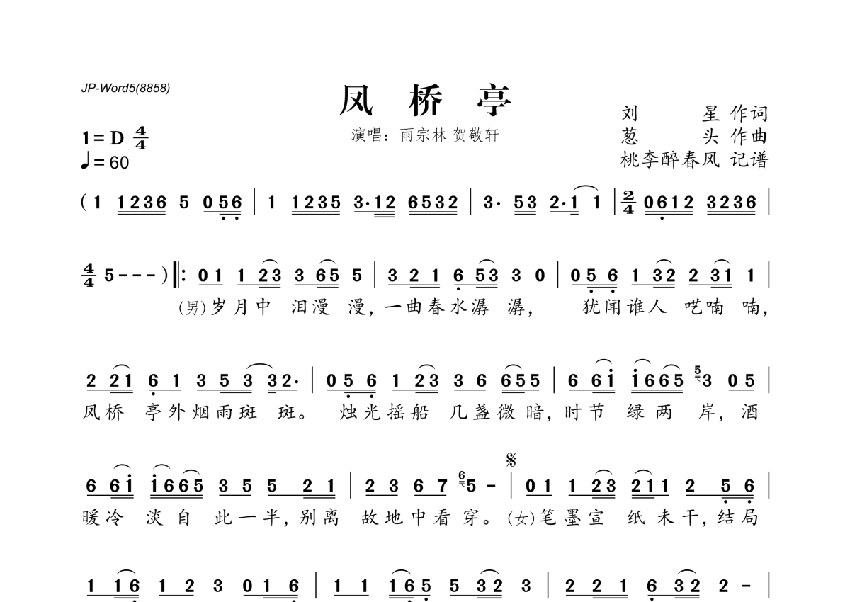 贺敬轩&雨宗林《凤桥亭》简谱