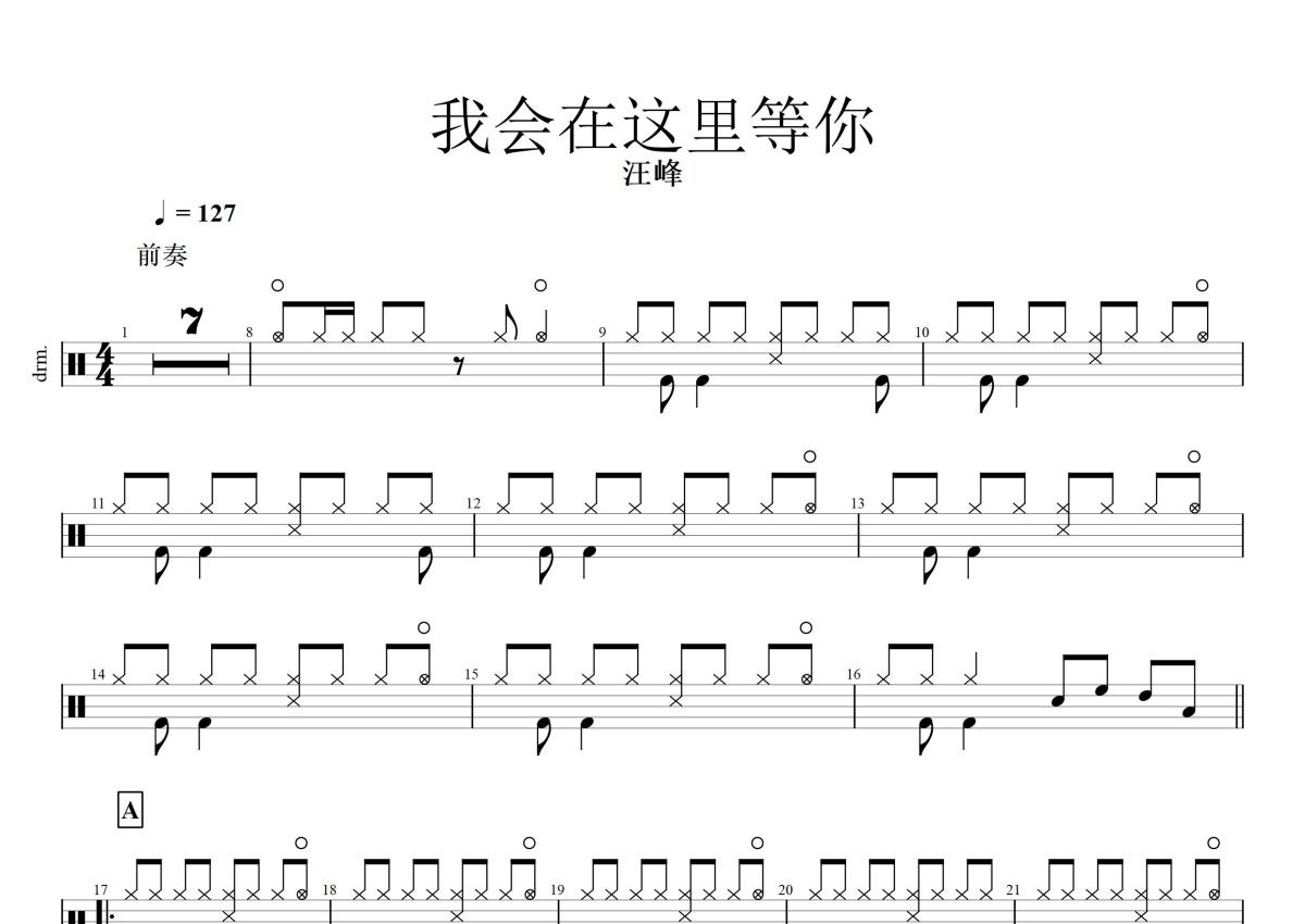汪峰《我会在这里等你》鼓谱 - 架子鼓谱