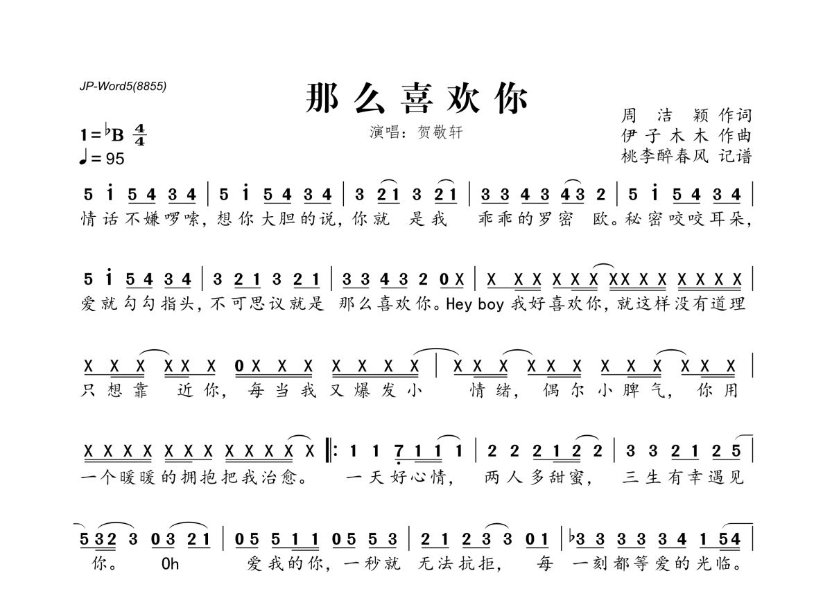 贺敬轩《那么喜欢你》简谱